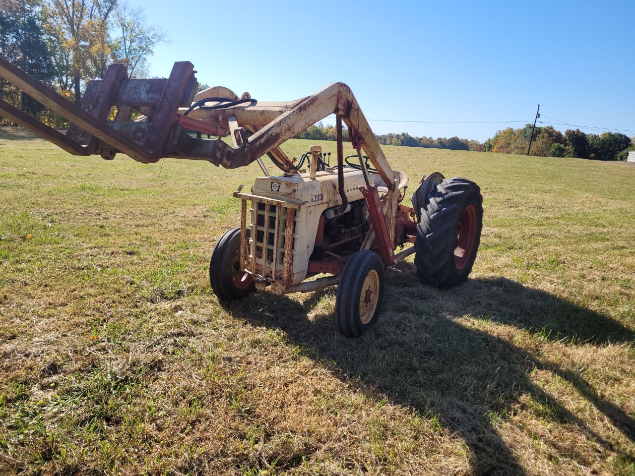 Cockshutt 550 with David White loader with tilt with pallet forks, Loader has some welds. 3-point works, charging system not hooked up and gauges not working. Runs and drives fine. Located in Corydon, Indiana