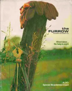 Our first photo is the cover of the November/December 1975 issue of The Furrow. Fence building is the subject of the cover and at the bottom right hand corner, it says a special bicentennial insert is enclosed.