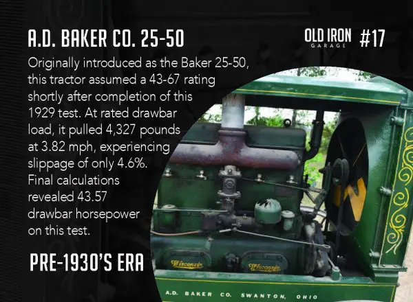Originally introduced as the Baker 25-50, this tractor assumed a 43-67 rating shortly after completion of the 1929 test. Shipping is included in the total price.